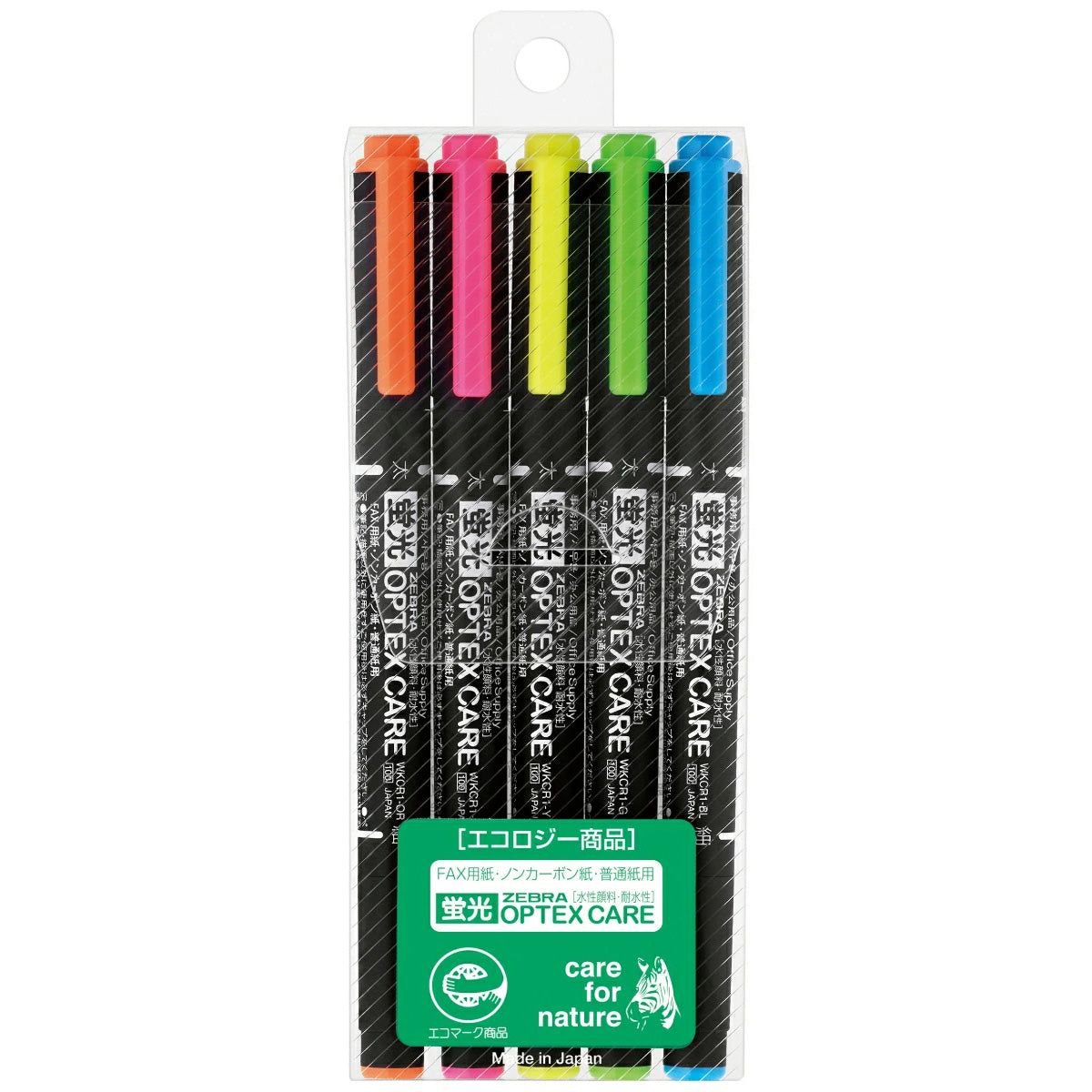 蛍光オプテックスケア 5色セット|水性顔料インク|再生素材使用のエコ蛍光ペン