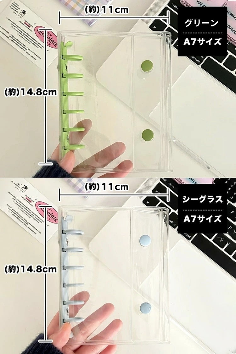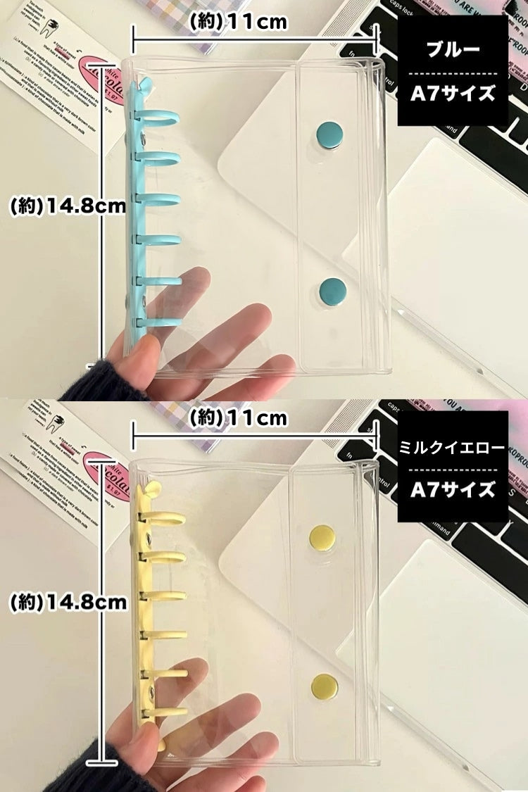 A7サイズ・M5サイズの2サイズ展開で、シール収納はもちろん、コラージュノートや推し活グッズの整理、DIY・クラフト素材の管理など、幅広い用途に対応します。