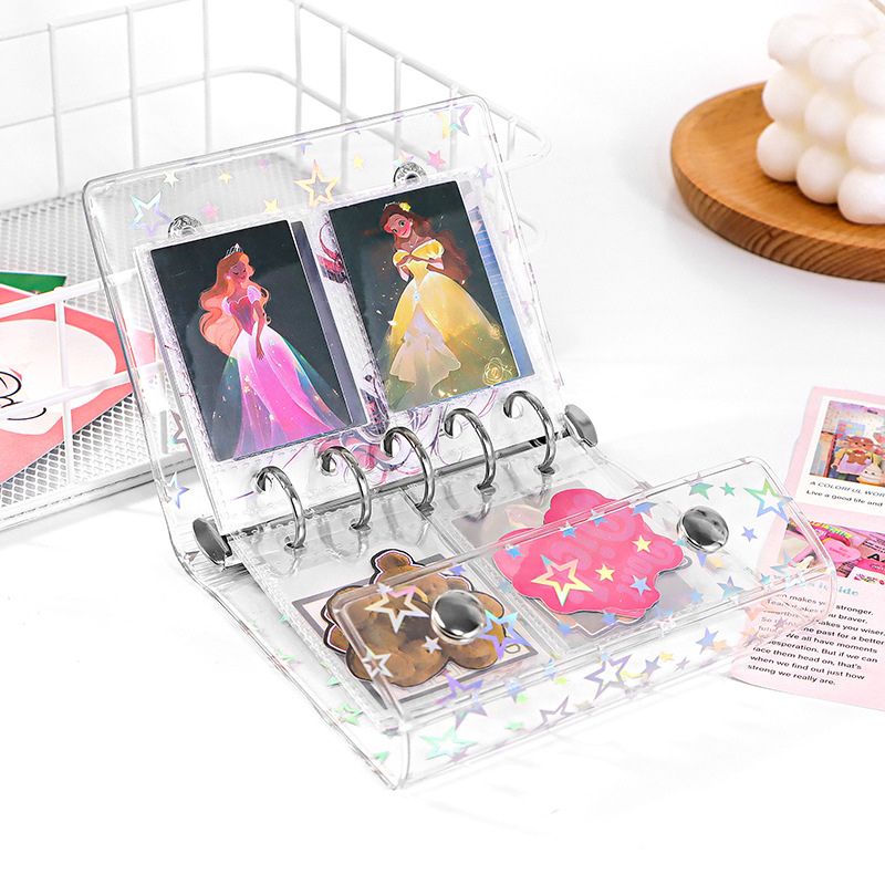 シール帳 M5サイズ クリアバインダー ダブルボタン仕様 星柄ホログラム カラフルスター 透明PVCカバー ミニ手帳 シール収納 推し活グッズ かわいい文房具