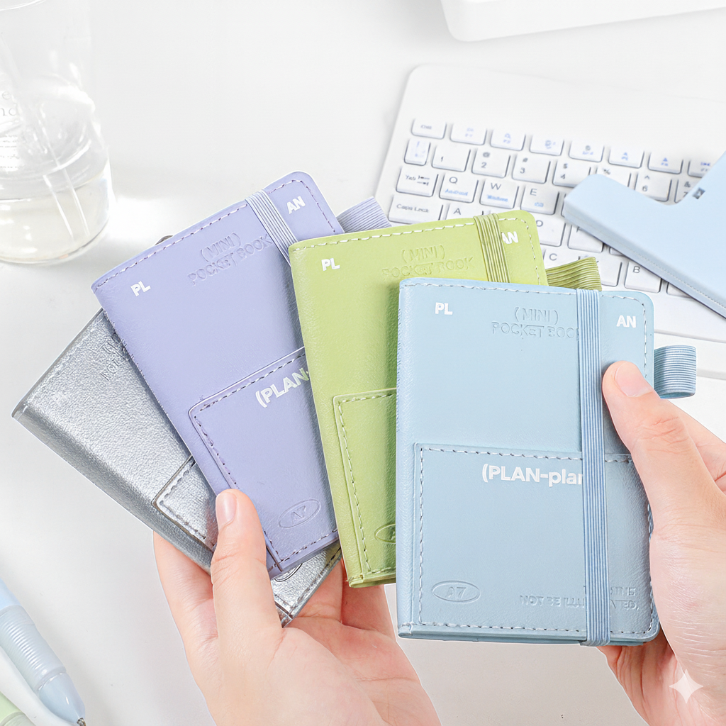 【新発売】 ミニノート A7 無地 方眼 PUカバー 防水 ペンホルダー ゴムバンド付き A7ノート 小さいノート ミニ手帳 小さい a7サイズ 手帳 Planwith mini 全4色