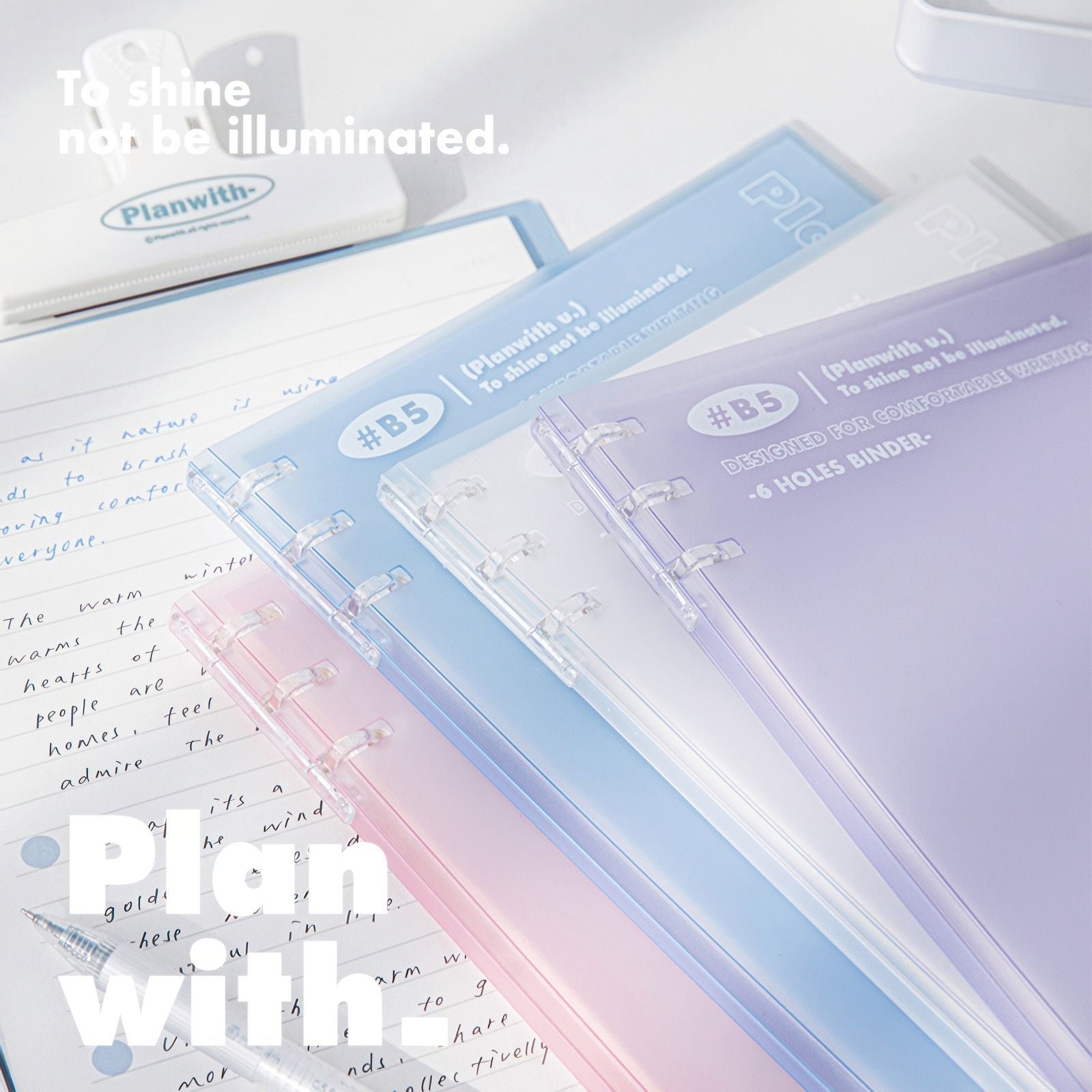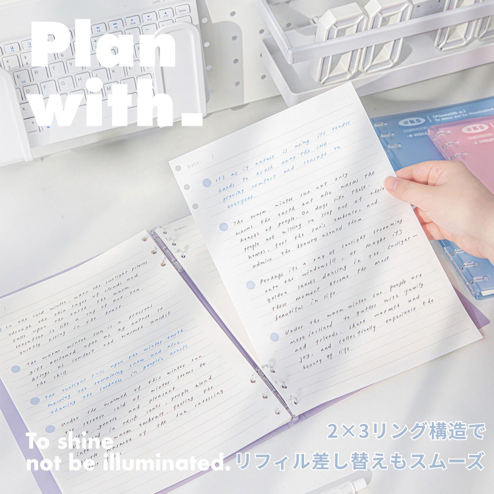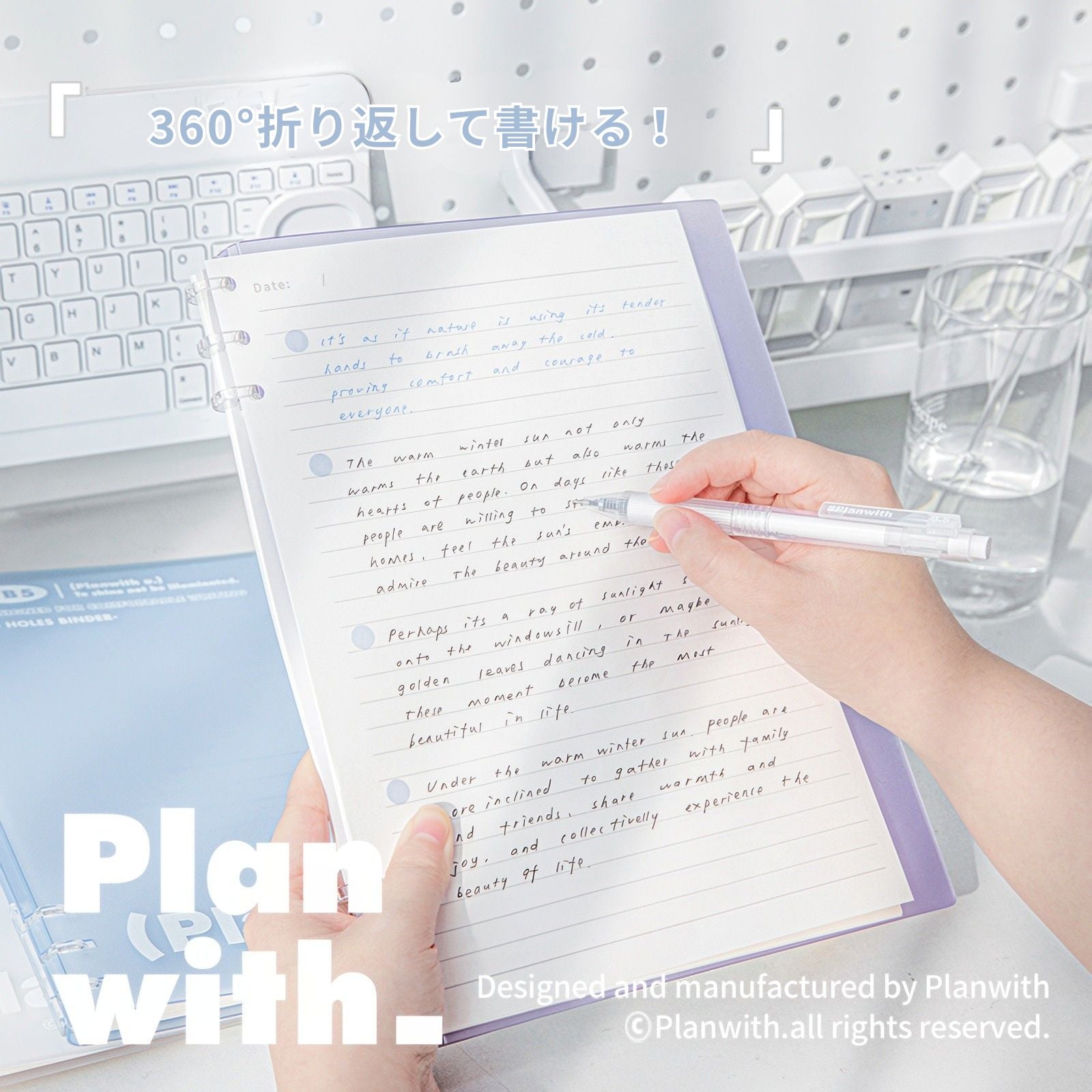 【新発売】Planwith ソフト ルーズリーフバインダー B5 6穴(2×3穴)|ノートのように使える 360°折り返しタイプ 100g上質紙 勉強用 仕事用 日記 ギフト 全4色
