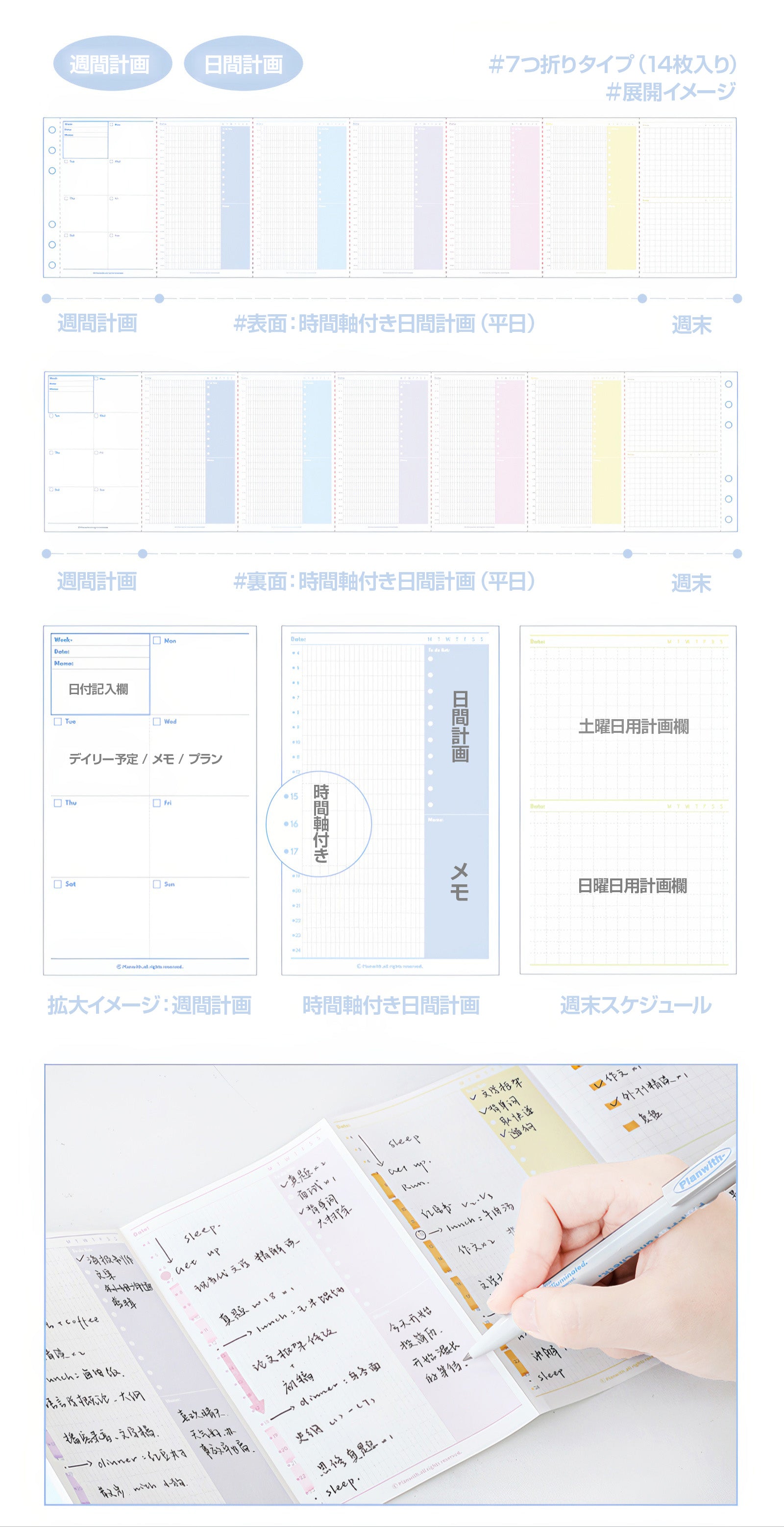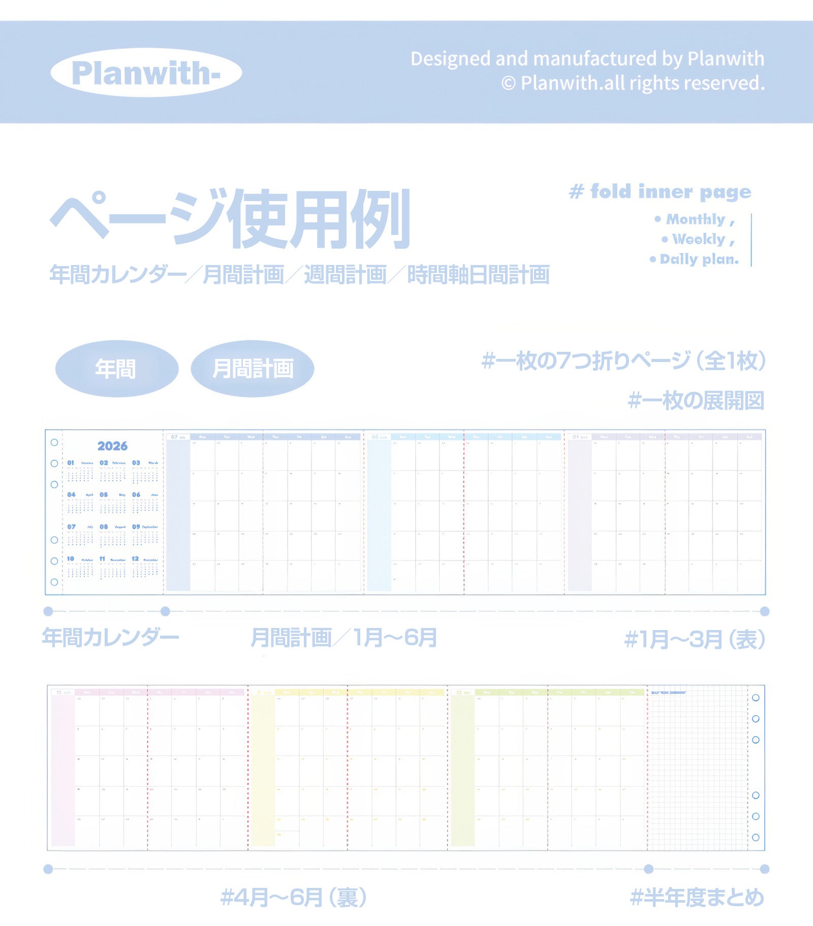 Planwith 蛇腹式 多機能手帳《折りたたみカラーページ対応》